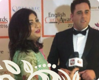 Jamie being interviewed after winning Curry Product of the Year Award