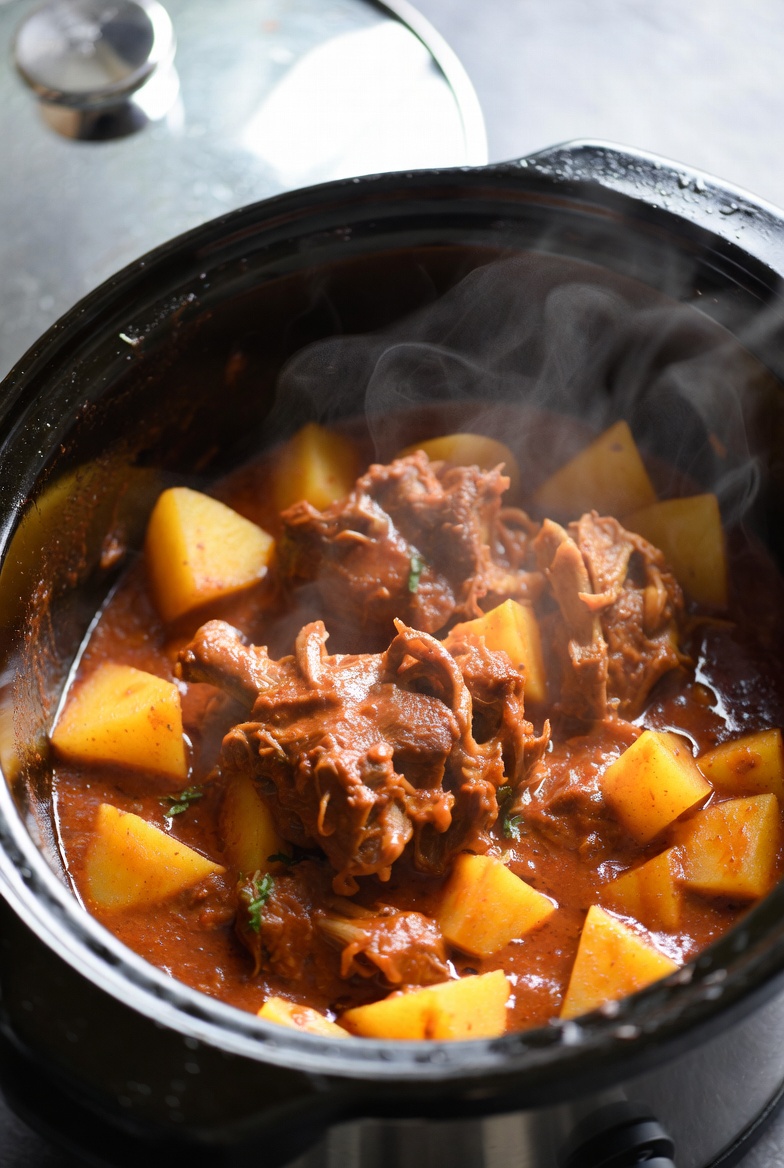 Allow your slow-cooked curry or stew to rest for about 10–15 minutes after cooking. This brief resting period lets flavours meld fully and gives the dish a chance to cool slightly, enhancing taste and texture. Keep the lid on to retain warmth, then give the curry a quick stir before serving.