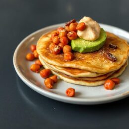 Harissa Spiced Chickpeas, Cashew Butter & Avocado Pancakes