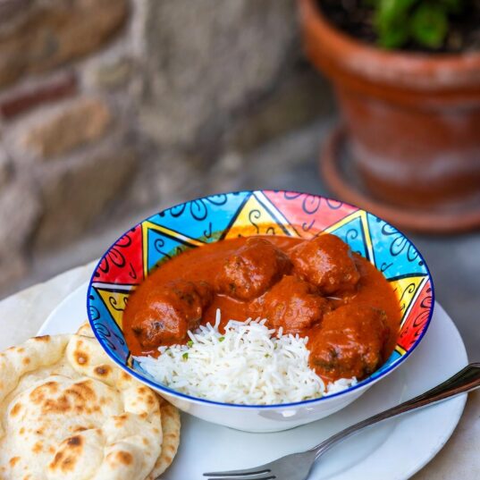- Add the meatballs to the sauce and 100mls of water. Cook the meatballs in the curry sauce for 20 minutes or until cooked through. Season to taste.