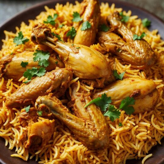 - Transfer the biryani to a warm serving dish and garnish with the fried onions and serve.