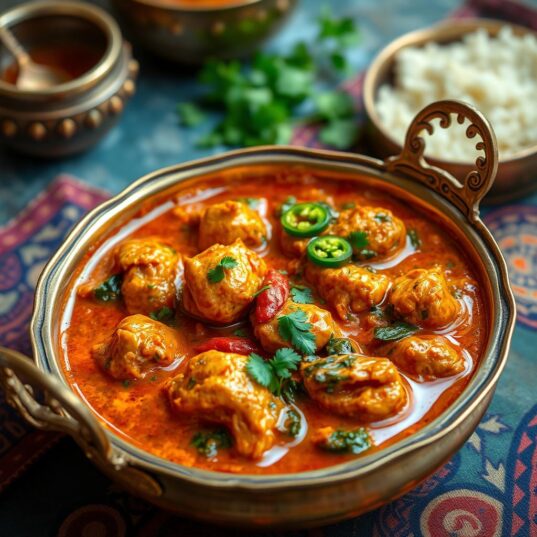 5. Add the chicken and all the spiced onion mixture, 185ml just-boiled water, salt, and tomatoes, bring to a simmer and cook for 4 minutes. Add the spinach in a few handfuls, allowing each to soften a little before adding the next. Cook for a further minute, stirring regularly, or until the chicken is cooked through, the tomatoes are softened and the spinach has wilted. Stir in the fresh cream and lime juice, warm through and it’s ready to serve with boiled rice or/and naan bread.