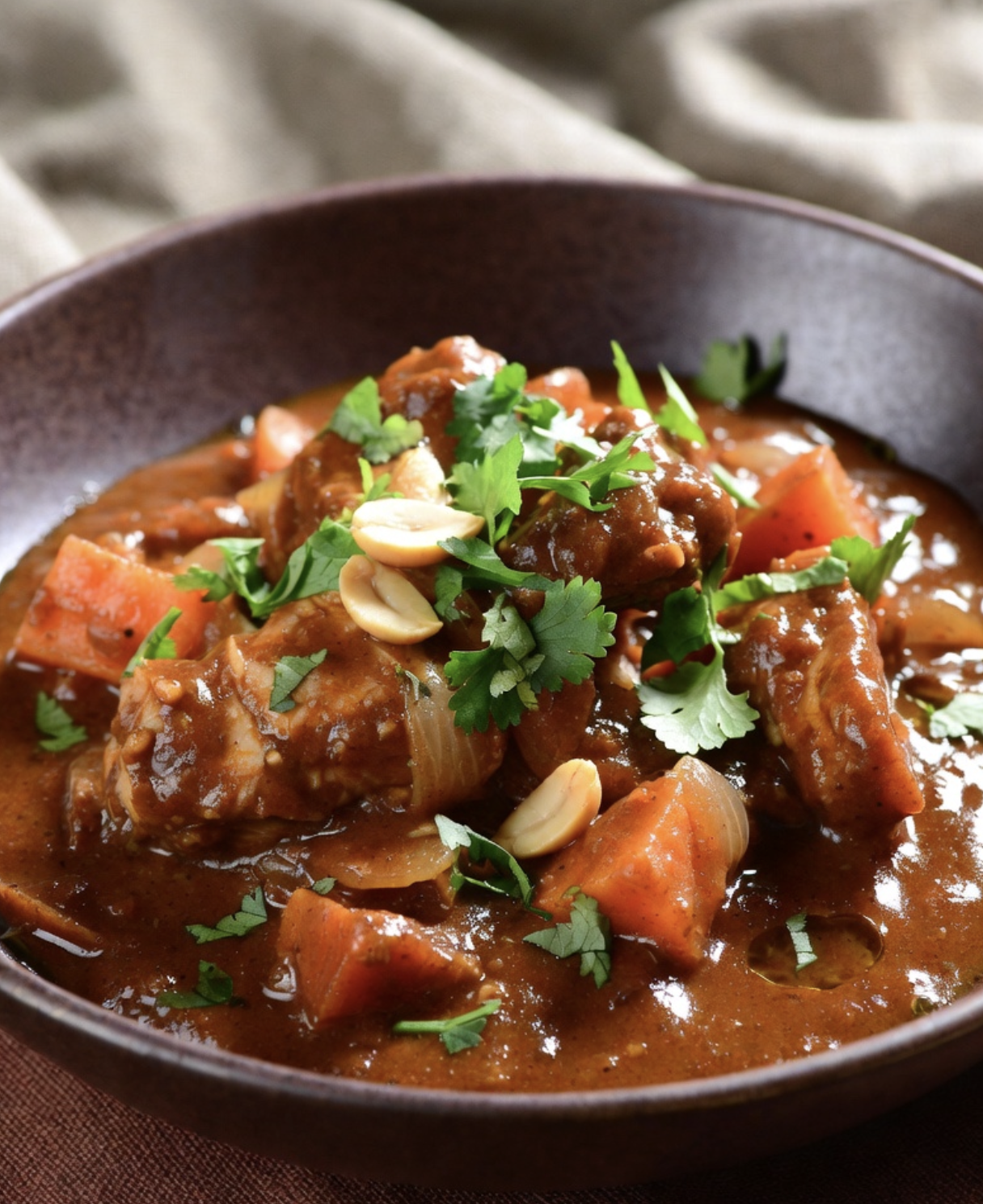 - Finish & serve – Scatter over the chopped coriander and peanuts. Taste and adjust seasoning, adding a squeeze of lime or lemon if you like. Serve hot.