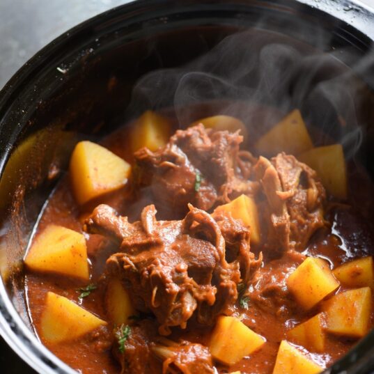 Tip: Wondering what cut of goat meat to use? Due to it’s high fat and bone content, goat neck cut is at its best when cooked nice and slow, as the marrow is released and fat renders into the meat. Making it perfect for this slow cooked curry.