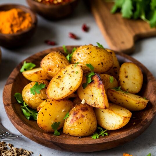 - Flavour Infusion: Let the potatoes sit for a few minutes after mixing in the masalas to allow the flavours to develop before serving.