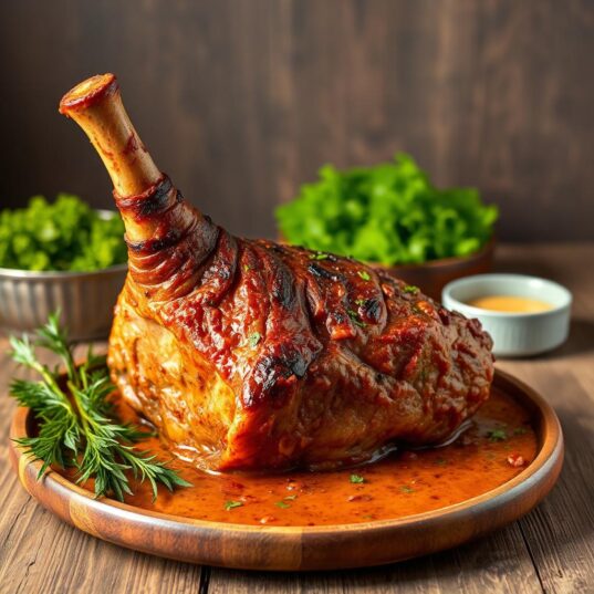8. Take the meat out of the oven, cover loosely with foil and leave to rest in a warm place for about 20 minutes before carving.