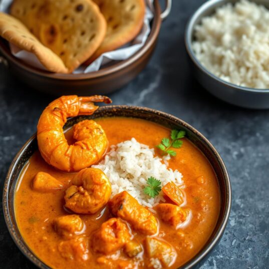 3. Add Shemin’s Seafood Curry Paste and cook gently for 2 minutes. Add chopped tomatoes and simmer for at least five minutes. If the sauce gets too dry add a little water.