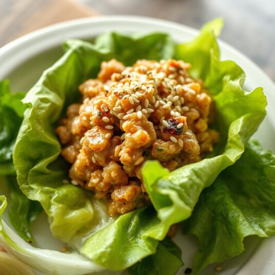 3. Arrange the iceberg lettuce leaves on another plate – they should sit one on top of another and let people indulge in a little DIY at the table