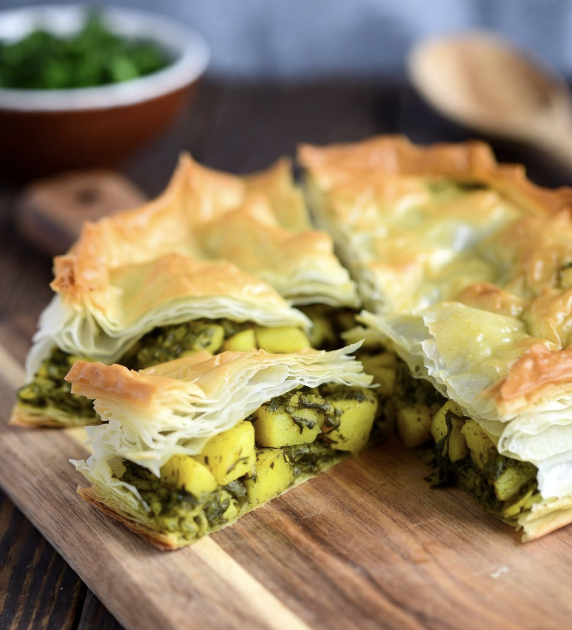 Bombay Potato and Spinach Filo Pie