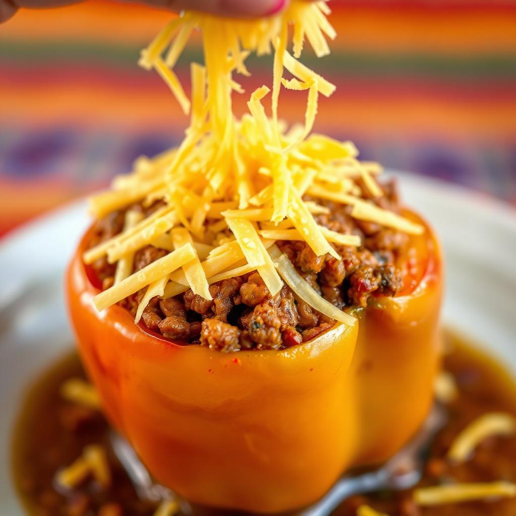 5) Remove the peppers from the oven and spoon the filling into each one.