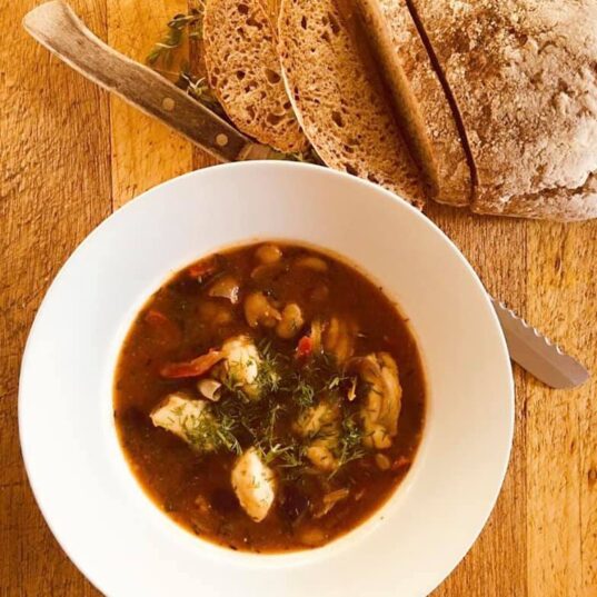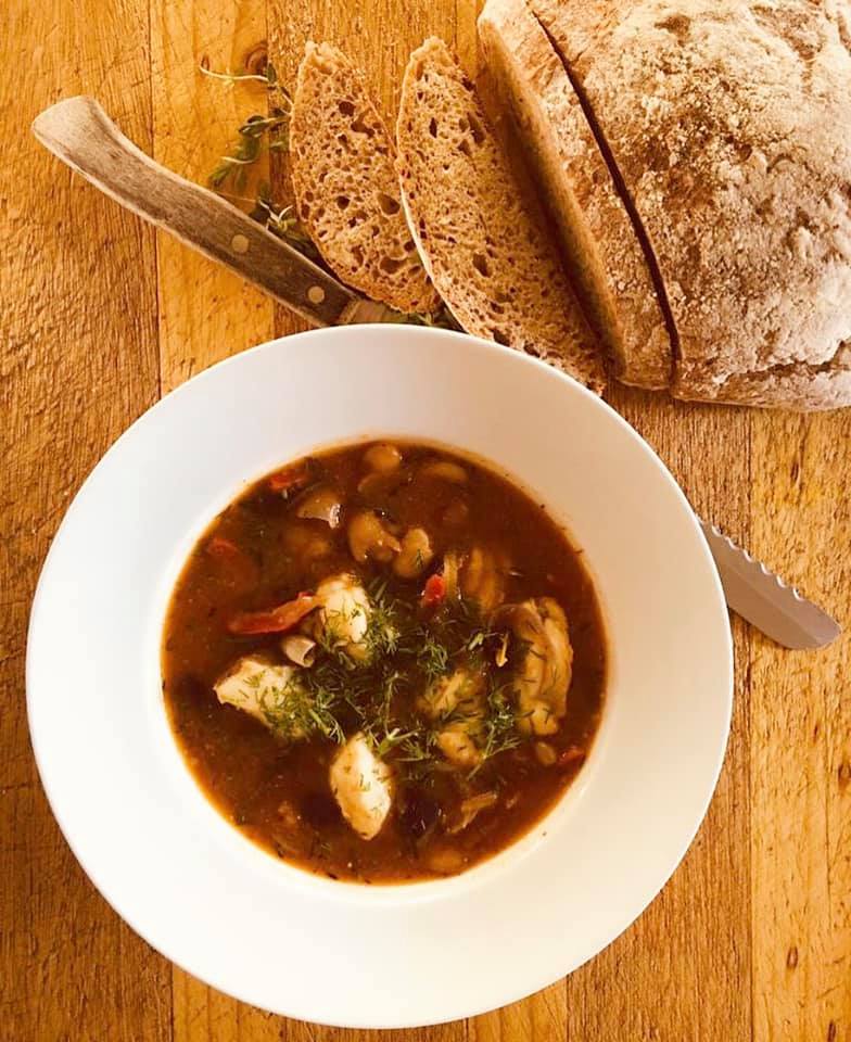 5. Divide into bowls and serve hot with some sourdough bread to mop up the delicious sauce.