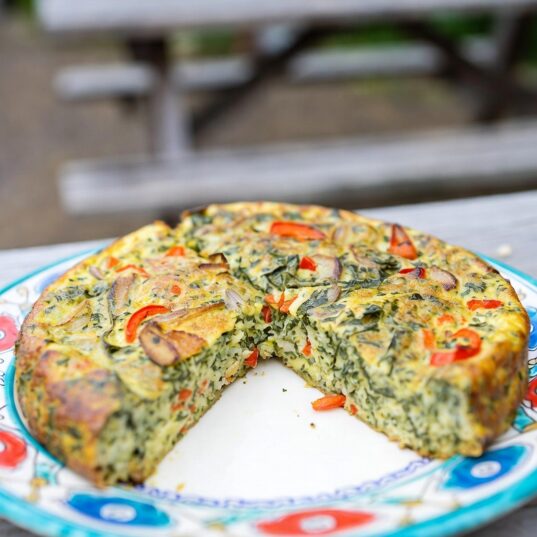 - This frittata works well with most vegetables, so take a look in your vegetable drawer and get creative! Meat lovers can also fry off some bacon or pancetta and add it to the frittata when you add the eggs.